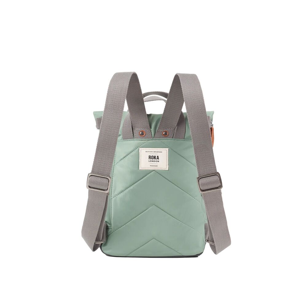 Canfield viene en opciones de lona reciclada y nailon reciclado. El nailon tiene un aspecto brillante y un tacto suave, y el lienzo tiene un aspecto texturizado y un tacto mate.